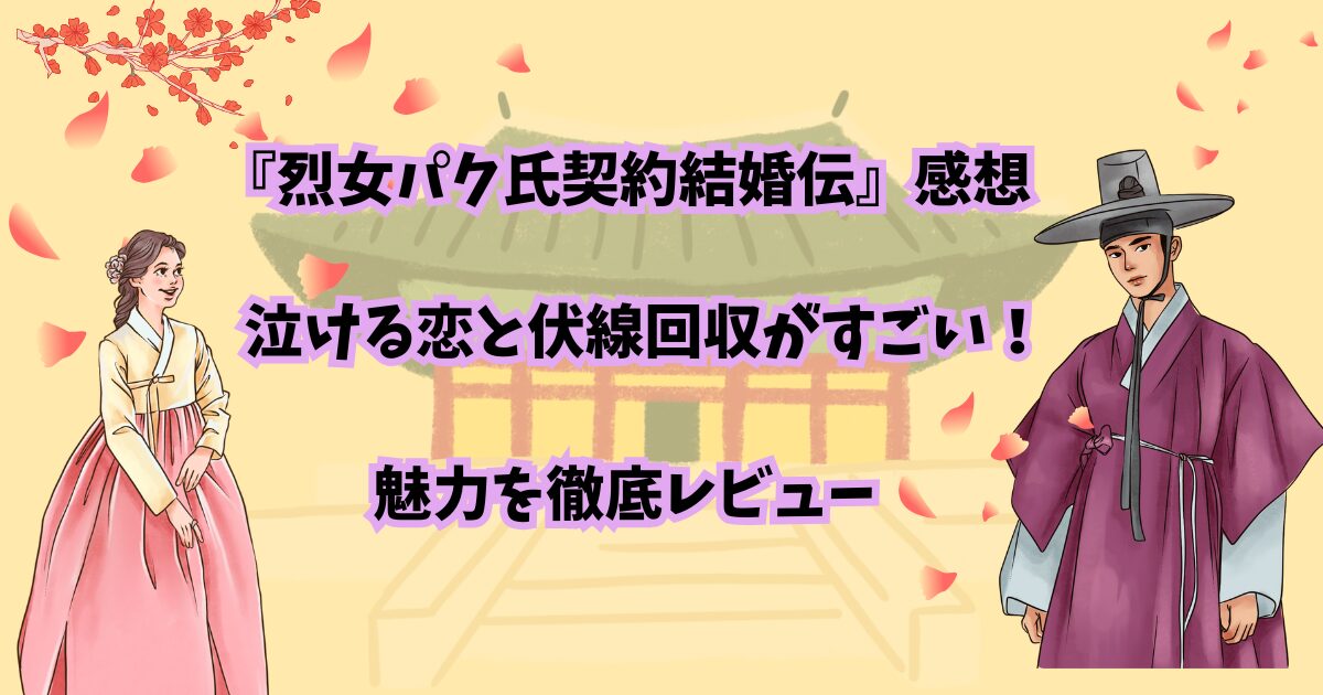 韓国ドラマ『烈女パク氏契約結婚伝』は、恋愛・ミステリー・タイムスリップ要素が美しく重なり合う話題作です。