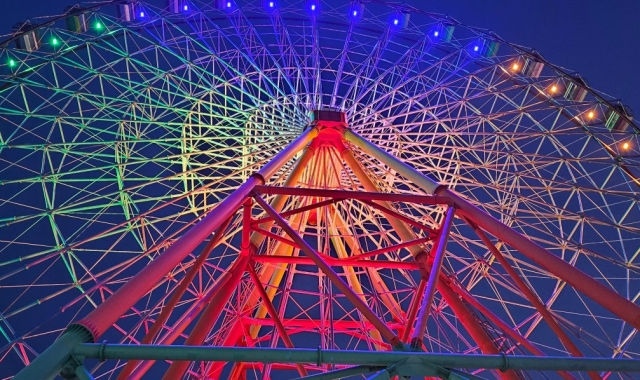 三次元の立体設計技法を駆使して非線形的で近未来的なデザインが特徴、夜のライトアップはとても綺麗です。